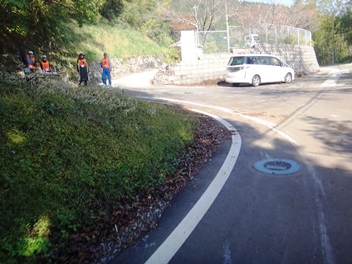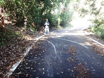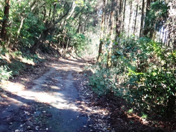 山頂から緩やかな下りを600m行くと道路(県道101号線)に出ます。