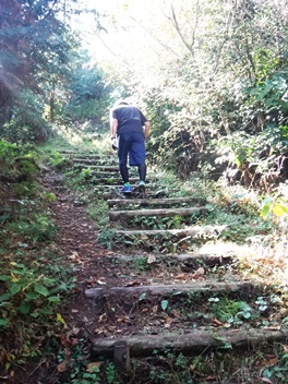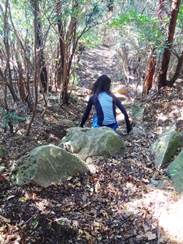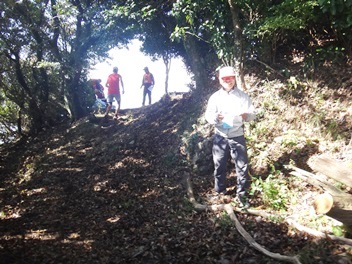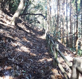 登山道は急で狭く傾斜しているところが多く、踏み外したら滑り落ちます。スリル満点。