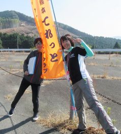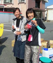 20kmの学校区てれっとエイド。2時間半で到着。てれっと3番目(@ベルト君、AOBSさん)