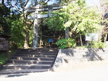 小萩山頂上(412m)。8km地点。坂を12分で上り切る。44分経過。前回と同じ。