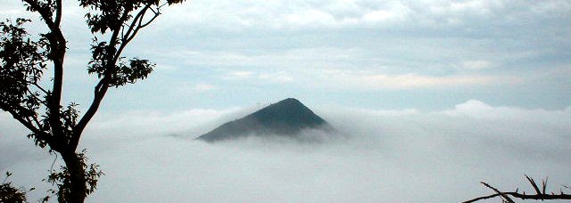 (雨の日に三ノ岳から見た二ノ岳。幻想的な風景が楽しめます)