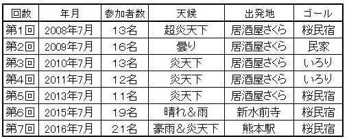 過去の記録。今年で7回目ですが、こんなに荒れた天候は初めて。しかもゲリラ豪雨に数回も襲われた。