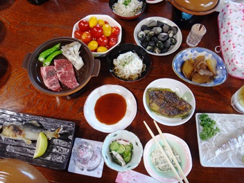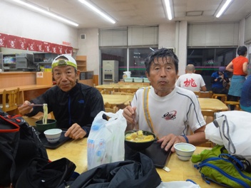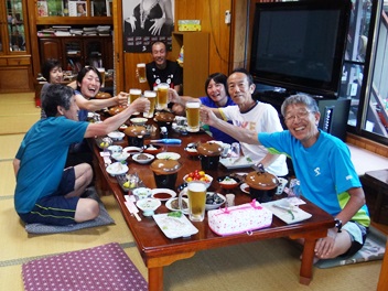 19時から夕食です。みなさん、ゴールした時の疲れ顔はもうありません。