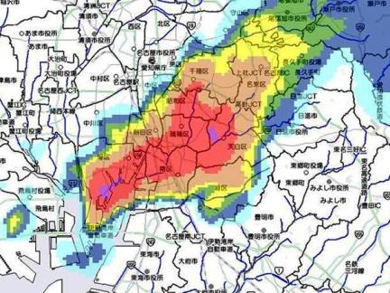 ならばあと数10分で止むだろうと思い、小降りなって出て行くとまた豪雨。スマホで調べると、また赤帯が新たにできていた。