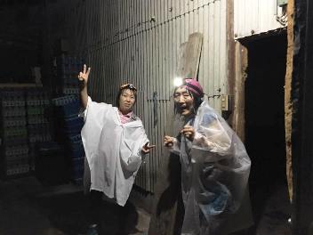 しかし豪雨はさらに続きました。山中では雨宿りできるような家はほとんどないので、屋根がある小屋?で何度も雨宿り。