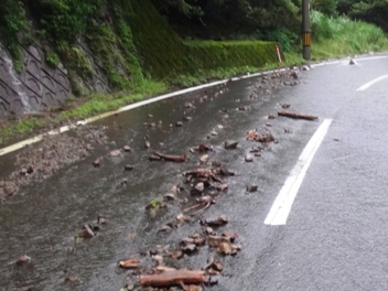 小さな土砂崩れはあちこちで起きていました。道路は小石がいっぱい。