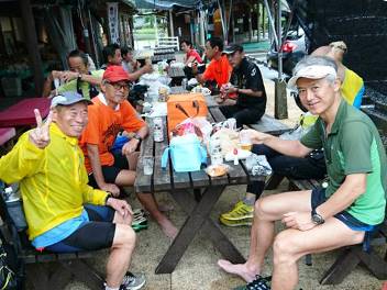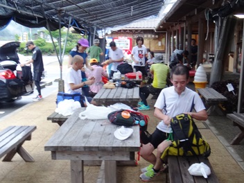 後方の選手にもここに来るように連絡して、ここで30分ほど休憩・食事。外は暴風雨状態です。