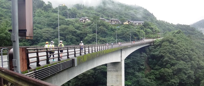 大通大橋(48km)、いつも5時前に着くので真っ暗ですが、今回は7時前に着いて明るかったですが、景色は見えず。