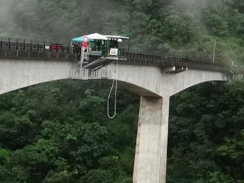 ここにはバンジージャンプ台があります。お客がいて飛び出そうとしていたので見ていたのですが、