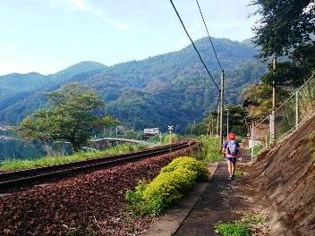 <海路>(かいじ)駅(17.4km)通過。1時間45分。昨年より3分遅い。