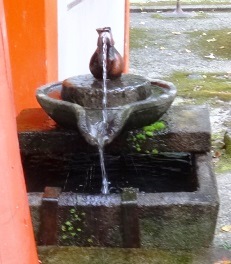 橋を渡って400mほど行くと祠があり、その横に湧水があります。周囲が荒れて、蜘蛛の巣が多く下りるのが大変。