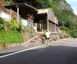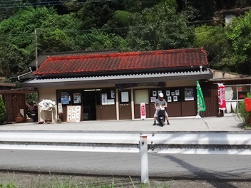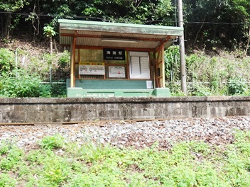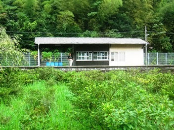 <球泉洞駅>(5.2km)通過。「球泉洞駅」にはトイレ、自販機あり。31分で通過。