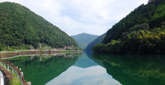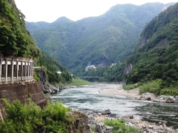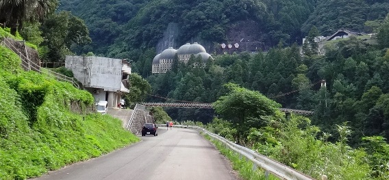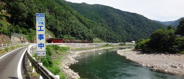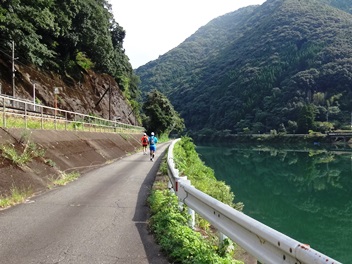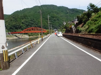 県道304号線(一般道の対岸)を下って行きます。ゴールは葉木(はき)の「クレオン温泉」。3時間〜3時間半。