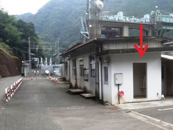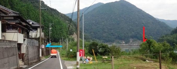 瀬戸石ダム。ここには水場が2か所あります(赤矢印)。