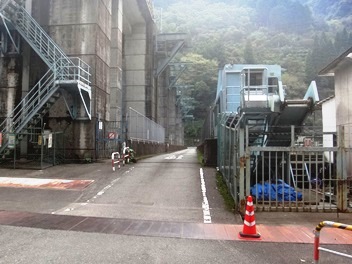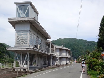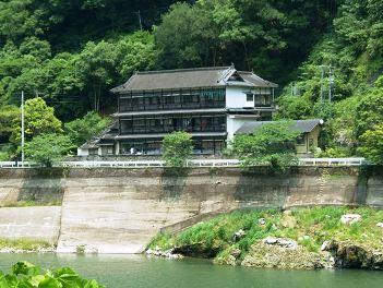 荒瀬ダムボートハウス(閉店)。7年前に荒瀬ダムが開放され、水位が下がったためボートが漕げず閉鎖。