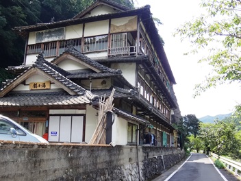 ガラス戸には「球磨川温泉」と書かれ、温泉旅館だったらしい。