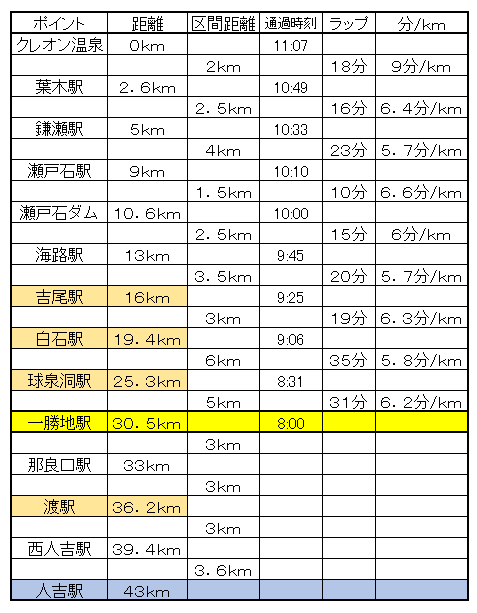 ほぼキロ6分で走行して、3時間7分で終了します。