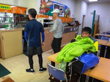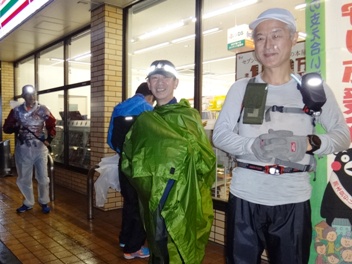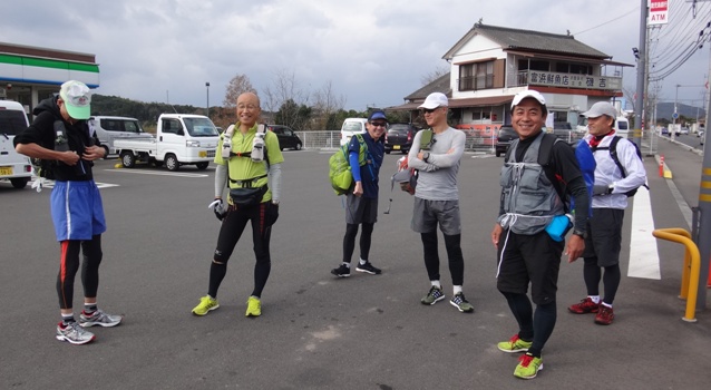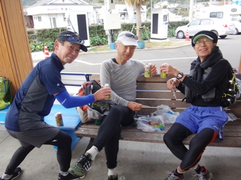 20kmのコンビニで昼食。ここまで3時間。みなさん元気!