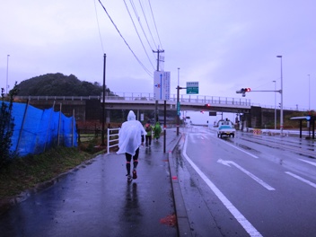 歩道は水溜まりだらけで、靴の中はぐっしょり。足はふやけてしまっています。いつ剥けてもおかしくない状態。
