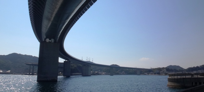鞍之元から16km(黒之瀬戸大橋)。ここまで2時間15分(20分休憩入れて)、予想以上の速さ。