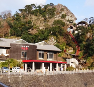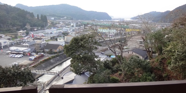 絶壁の中腹に造られ、津奈木の町と山々が270度のパノラマで展望できます。