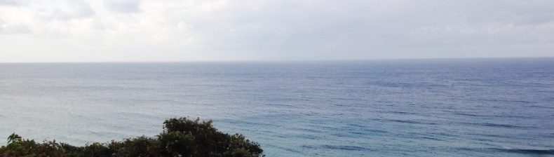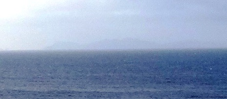(長島町の展望所から見た東シナ海・下の写真は中央部分の拡大・中央に見えるのは甑島(こしきじま))