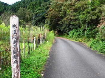 コテージから12分ほど走ると「鳥獣慰霊碑」という石碑があります。その先で右折します。