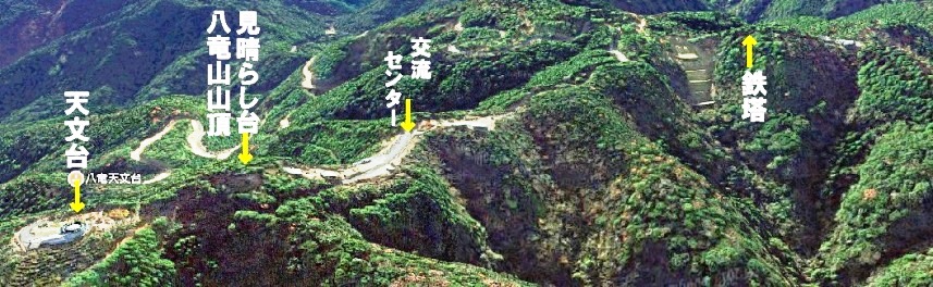 天文台、見晴らし台、交流センター、鉄塔の位置関係。