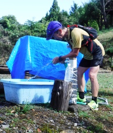 ここで力水。鶴喰エイド(16km、10時23分、2時間48分)。