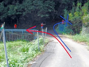 下りの途中で三叉路がありますが、左(赤線)です。右(青線)へ上ってはダメ。