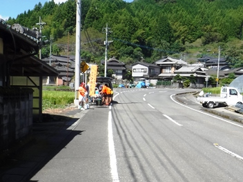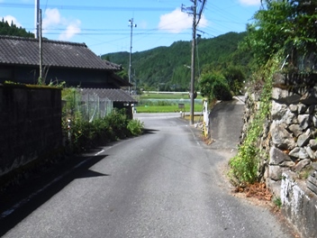 渋利の村に入って近道します。左写真の所で右折、数百m行って右折します。
