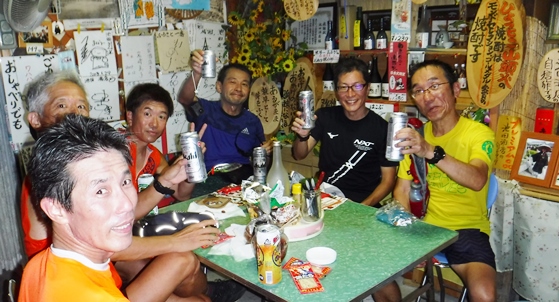ここは酒屋、当然ここで宴会。先にゴールした人達が盛り上がってました。