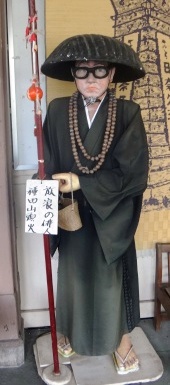 左)駅にあった山頭火の人形。