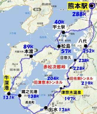 STAGEB=津奈木から三太郎峠トンネルを経由して熊本市へもどる95km。