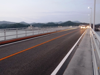 「1号橋」3:00着。新橋(天城橋)の完成で旧橋(天門橋)を通る車は少ないかと思ったが、結構多い。