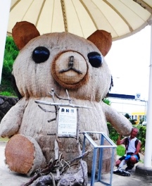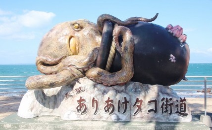 タコの大きなモニュメント。タコツボに入っているタコはリアル。