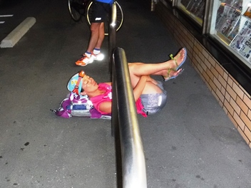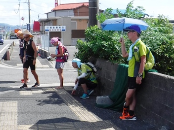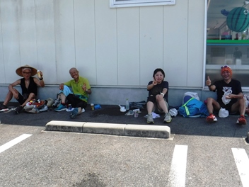 コンビニで全員集まった。またしても昨日と同じ39度に。みんなの顔に疲労が・・