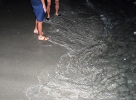 夜は海岸に出て、海ほたるを見ようとしましたが、満潮で見れず。