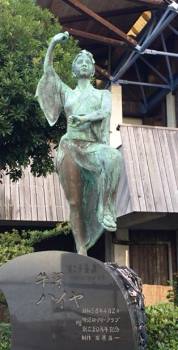 牛深ハイヤ大橋バックにハイヤ踊りのポーズ。