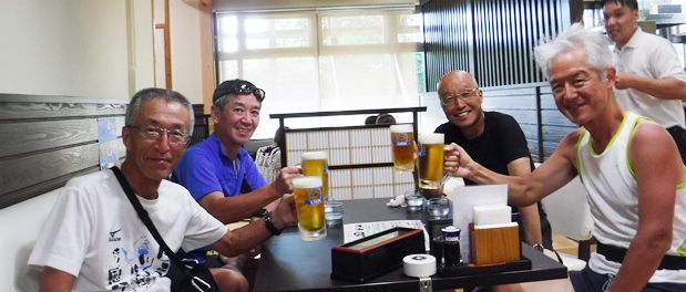 先頭は小場佐・中山チーム。次がろみっち・山名チーム。最後は上野・こっちゃんチーム。