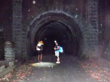 レンガ作りのトンネルです。電灯はなく真っ暗。