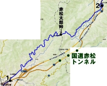 <赤松太郎峠への道> @御立岬峠入口から右折して、Aで国道に戻ります。その間6.1km。