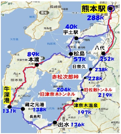 STAGEA=フェリーで長島に渡って、出水・水俣・津奈木まで66km。