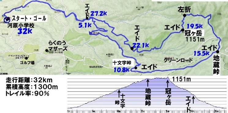 →グリーンロード→20k冠ヶ岳→27k分岐点→32kゴール河原小