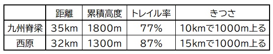 <「九州脊梁山脈トレラン」との比較>