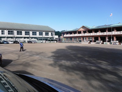 ゴールの小学校が見えてきました。なんとか4時間は切れそう。