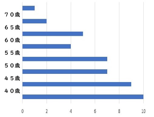 参加者の年齢構成は40歳以下が一番多く、平均は50歳弱。最高年齢70歳、最若は23歳。