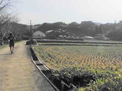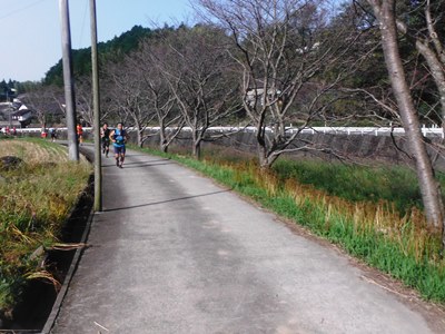 1kまでは車道横の村道を走行。2kから上り開始。この辺まで2位で走行。みなさんゆっくり走っている。