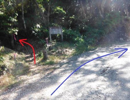 冠ヶ岳への曲がり角。ここもボーッとしてたらまっすぐ(青線)行きます。左折(赤線)です。