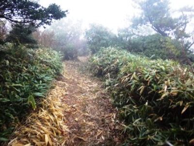 冠ヶ岳の山頂も結構坂がきつい。一般の登山者が道をあけてくれるので、上りでも走らないわけにはいかず・・きつい
